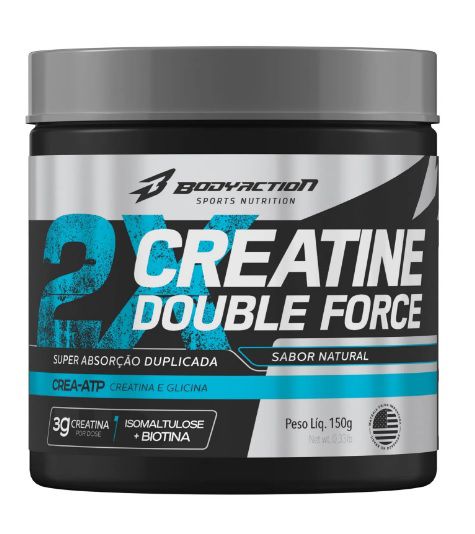 CREATINE DOUBLE FORCE da BODY ACTION é um suplemento a base de Creatina Monohidratada, Isomaltulose, Glicina e Biotina: uma potente e exclusiva combinação que promove maior eficácia e absorção da creatina, além de agir no aumento da força, visando apoiar seus resultados nas atividades físicas.